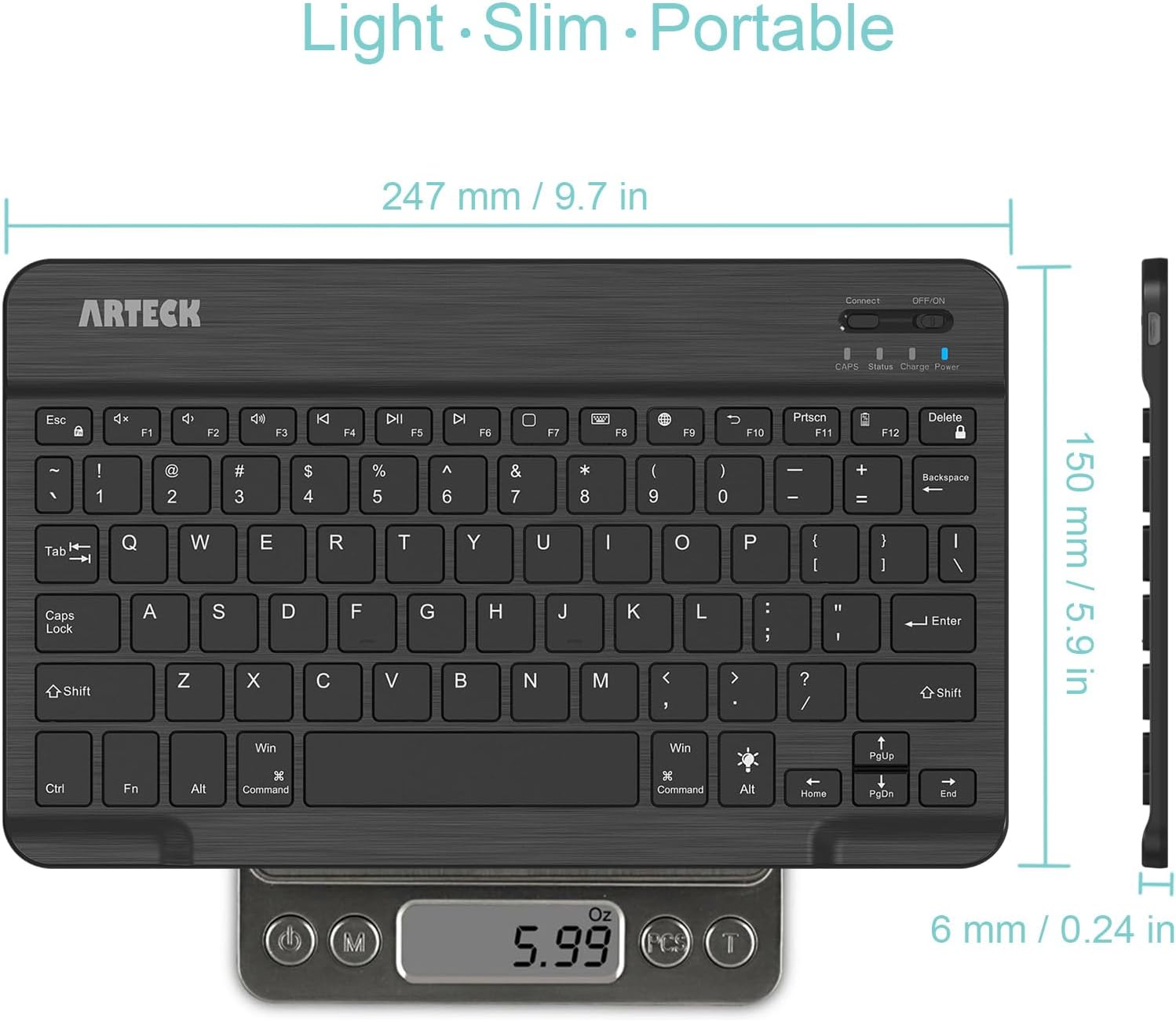 Arteck Universal Backlit Bluetooth Keyboard – Ultra-Light Slim Wireless 7-Color Keyboard for iOS, iPad Pro, Android, Windows Tablets & Smartphones – Rechargeable 6-Month Battery